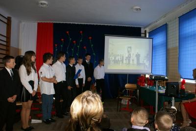 Po cześci oficjalnej prowadząca Weronika Tomczak zaprosiła zgromadzonych na częśc artystyczną przygotowaną przez uczniów klasy szóstej.