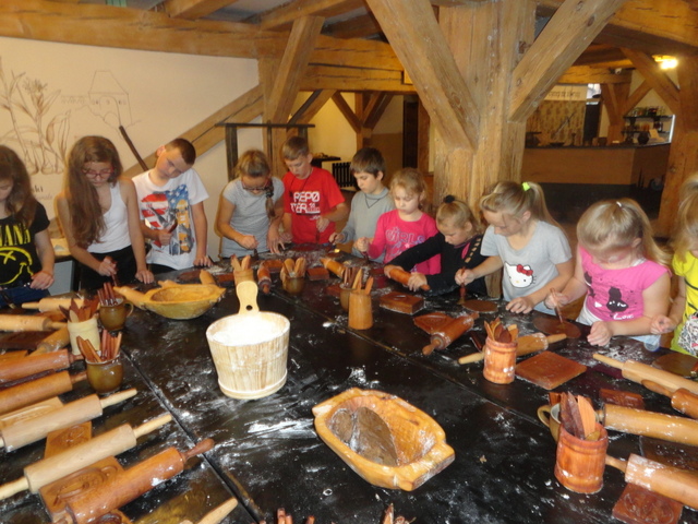 Seans p.t. „Wirująca ziemia” podobał się wszystkim. Następnie przeszliśmy na Starówkę. Tam zobaczyliśmy pomnik słynnego astronoma, matematyka i fizyka - Mikołaja Kopernika oraz Krzywą Wieżę. Niestrudzeni pieszą wędrówką po Starówce, zawitaliśmy w Żywym Muzeum Piernika. Jest to ciekawe i magiczne miejsce wypełnione historią Torunia i zapachem pierników. Nie tylko poznaliśmy sposób wyrabiania toruńskiego specjału, ale przede wszystkim sami wzięliśmy udział w procesie jego powstawania. Przyniosło nam to wielką frajdę, a także dało możliwość zdobycia wiedzy na temat pierników. Po krótkim terminowaniu u mistrza piernikowego nabyliśmy uprawnienia piernikarskie. Każdy z nas mógł zabrać ze sobą własnoręcznie wykonany piernik. W drodze powrotnej obowiązkowo odwiedziliśmy McDonald’s. Zmęczeni, ale szczęśliwi z plecakami pełnymi korzennych słodkości, około godziny 19.00 dotarliśmy do Woli Wierzbowskiej. Przed szkołą czekali na nas rodzice.