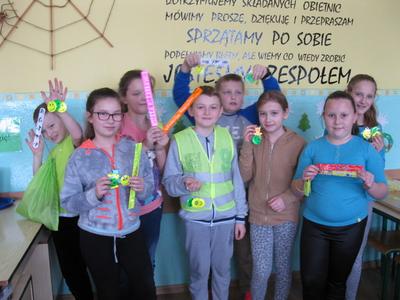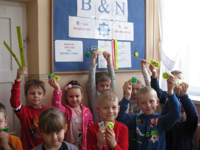 W styczniu 2016r. w naszej szkole w ramach realizacji projektu ,,B&N” – B jak bezpieczni i N jak niechronieni zorganizowano akcję ,,Bank Odblasków”. Uczniowie kl. I – VI zbierali odblaski, aby obdarować nimi wszystkie Babcie i Dziadków z okazji Ich święta. Wszystkie klasy rywalizowały w ilości zebranych znaczków, opasek i kamizelek odblaskowych. Najwięcej odblaskowych gadżetów zebrali uczniowie klasy IV. Brakujące odblaski i nagrody dla zwycięskiej klasy pozyskaliśmy od naszego sponsora – Oddziału PZU w Ciechanowie. Całej akcji przyświecał nam jeden cel, aby zadbać o bezpieczeństwo dziadków uczestniczących w ruchu drogowym jako pieszych poruszających się po zmroku, czy w warunkach ograniczonej widoczności.