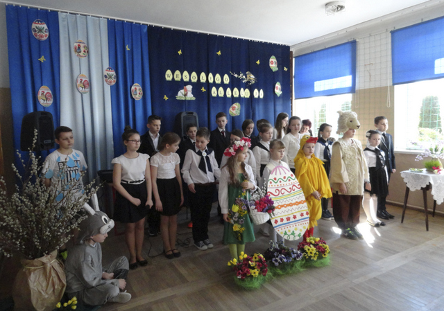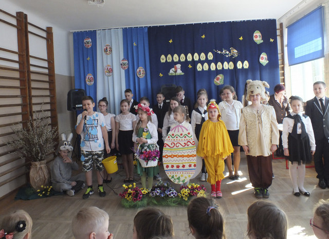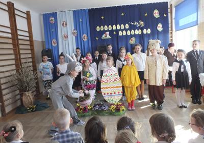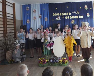 "Wesołego Alleluja". Uczniowie pod kierunkiem p.Urszuli Derbin słowem i piosenką przybliżyli istotę świąt Wielkanocnych oraz zwyczaje i tradycje z nimi związane.
