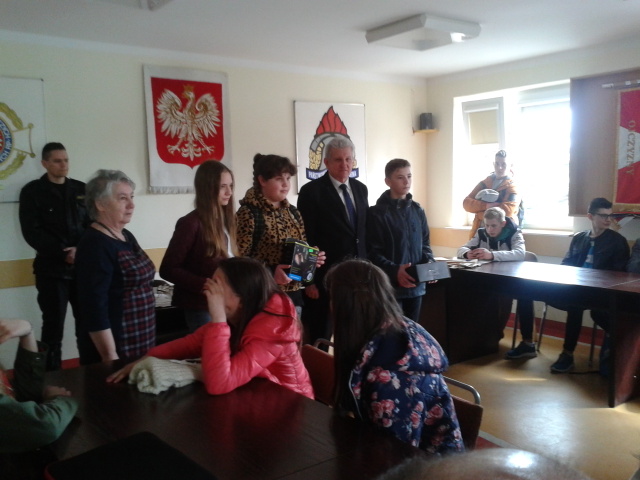31 marca 2016 r. w siedzibie Straży Pożarnej w Ciechanowie uczniowie czterech gmin ze szkół podstawowych, gimnazjalnych i ponadgimnazjalnych, przystąpili do eliminacji powiatowych Ogólnopolskiego Turnieju Wiedzy Pożarniczej ,, Młodzież Zapobiega Pożarom". Eliminacje powiatowe składały się z dwóch etapów: pisemnego i ustnego. Pierwszy etap składał się z 30 pytań zamkniętych. Po tym etapie zostali wyłonieni zwycięscy, którzy przystąpili do drugiego etapu ustnego. Uczeń naszej szkoły Goździewski Rafał w pierwszym etapie uzyskał 18/30 pkt i zakwalifikował się do etapu drugiego,w którym odpowiedział na trzy pytania, za które uzyskał 15 pkt i zajął II miejsce w eliminacjach powiatowych wśród uczniów szkół podstawowych oraz otrzymał nagrodę w postaci sprzętu multimedialnego.