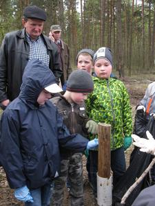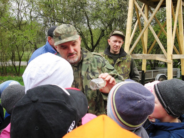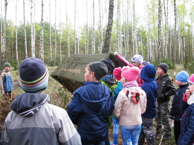 Z okazji Międzynarodowego Dnia Ziemi uczniowie naszej szkoły z klasy I i III wraz z rodzicami i wychowawcami panią Bogumiłą Blados i Izabellą Łączyńską wybrali się do zaprzyjaźnionego Nadleśnictwa w Szulmierzu. Postanowiliśmy włączyć się do akcji i posprzątać las. Zabraliśmy ze sobą jednorazowe rękawiczki i worki na śmieci. Po lesie oprowadzał nas łowczy z Koła Myśliwskiego ,,Przepiórka" pan Maciej Kołakowski, który korzystając z okazji opowiadał o lesie, jego warstwach,zwierzętach i roślinach. Pokazywał dzieciom budki lęgowe ptaków, paśniki i lizaki, gdzie w czasie ciężkiej zimy mogą się pożywić głodne zwierzęta. Po 1,5 godzinnej wędrówce po lesie zebraliśmy 3 worki śmieci, pozostawione przez ludzi. Powróciliśmy do leśniczówki, gdzie czekał na nas podleśniczy pan Krzysztof Pilarski i myśliwy Koła Myśliwskiego ,,Przepiórka" pan Michał Filimonow, którzy przygotowali dla nas ognisko, na którym mogliśmy upiec przygotowane przez rodziców kiełbaski. W czasie oczekiwania na gorący posiłek pan podleśniczy opowiadał nam o lesie i zagrożeniach jakie możemy w nim spotkać. Z wielkim zainteresowaniem dzieci oglądały okazy kleszczy, jakie przyniósł ze sobą pan podleśniczy.Instruował jak zabezpieczyć się przed nimi i opowiadał o chorobach, które przenoszą. Pan myśliwy pokazał dzieciom psa myśliwskiego, pokaźną kolekcję poroży jeleni i danieli, ciosy dzików, wabiki na lisy i zające. W czasie, gdy jedni spożywali gorący posiłek, inni mogli pobawić się i pograć w piłkę i ringo. Na koniec pan Maciej Kołakowski pokazał nam stado hodowlane danieli. Ciężko było nam rozstawać się z lasem, gdy wyprawa dobiegła końca. Podziękowaliśmy myśliwym i podleśniczemu za gościnę i samochodami powróciliśmy do szkoły,zmęczeni, zadowoleni, że choć przez chwilę obcowaliśmy z dziewiczą naturą.