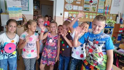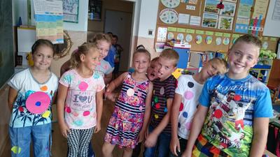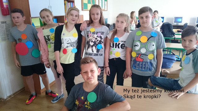 Tego dnia uczniowie wszystkich klas przyozdobili swoje ubrania kolorowymi kółkami. Pomysłowość i radość możecie oglądać na zdjęciach.