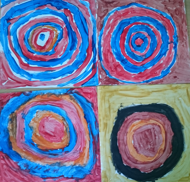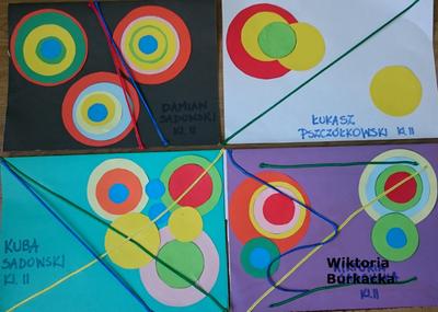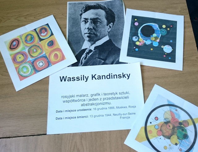 Poznaliśmy twórczość rosyjskiego malarza i grafika Wasilija Kandynskiego. Szczególnie zaciekawił nas okres, kiedy tworzył on abstrakcyjne prace na bazie figur geometrycznych, głównie kół. Zainspirowani - stworzyliśmy własne obrazy. Może kiedyś będą warte miliony monet?