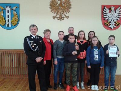 W dniu 16 marca 2017 r. w Urzędzie Gminy w Opinogórze Górnej, odbyły się eliminacje gminne Ogólnopolskiego Turnieju Wiedzy Pożarniczej ,, Młodzież zapobiega pożarom". Do eliminacji przystąpili uczniowie z trzech szkół podstawowych: Kołaczkowa, Opinogóry Górnej i Woli Wierzbowskiej. Naszą szkołę reprezentowali uczniowie: Krajewska Julia, Kocięcki Radosław, Moczulak Wiktor z klasy VI, Goździewska Weronika z klasy V i Krębski Bartłomiej z klasy IV. Uczniowie pisali test składający się z 30 pytań zamkniętych i 20 pytań otwartych. W rywalizacji międzyszkolnej uczniowie naszej szkoły zajęli III miejsce. Bartłomiej Krębski z klasy IV zajął I miejsce i zakwalifikował się do eliminacji powiatowych, które odbyły się w dniu 17 marca 2017 r. w Komendzie Powiatowej Straży Pożarnej w Ciechanowie.