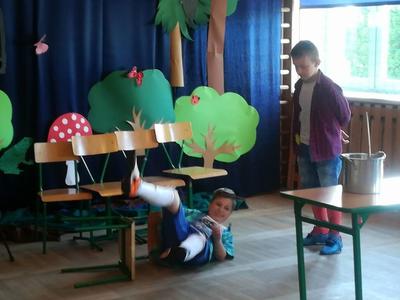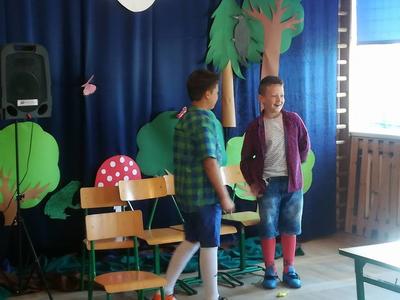 Uczniowie, którzy wzięli udział w gminnym Konkursie Recytatorskim zaprezentowali wiersze J. Brzechwy dla dzieci z oddziału przedszkolnego.