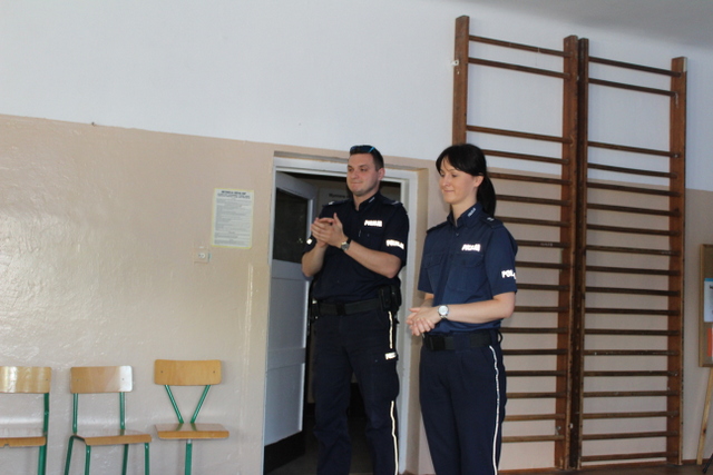 Dnia 21 czerwca, ramach realizacji programu B&N (Bezpieczni Niechronieni)odbyło się w naszej szkole spotkanie uczniów z przedstawicielami Komendy Powiatowej Policji w Ciechanowie na temat zagrożeń i niebezpieczeństw, które mogą zaistnieć w czasie wakacji i sposobów ich zapobiegania przez dorosłych i dzieci.