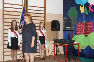 Po cześci oficjalnej prowadząca Domicela Wojtasiak zaprosiła zgromadzonych na część artystyczną przygotowaną przez uczniów klasy szóstej.