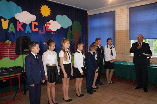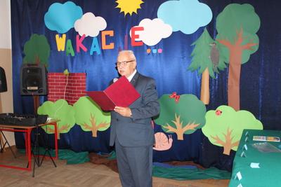Pan dyrektor podziękował wszystkim, którzy wspierali w różnorodny sposób pracę szkoły. Zapowiedział, że w wakacje będzie kapitalny remont dachu, dokończenie ocieplenia ścian i wymiana instalacji centralnego ogrzewania. Życzył, aby wakacje były czasem dobrego odpoczynku i nabierania siły do dalszej pracy lub nauki.