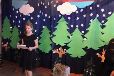 13 stycznia 2018 roku o godzinie 13:00 rozpoczęła się choinka szkolna. Wszyscy świetnie bawili się na pięknie udekorowanej sali przy wspaniałej muzyce. Wśród dzieci bawiących się na choince znaleźli się także nasi absolwenci, którzy obecnie uczęszczają do Gimnazjum w Opinogórze Górnej, a także do szkół ponadgimnazjalnych. Cieszymy się bardzo, że nie zapomnieli o naszej szkole i z chęcią odwiedzają ją. O godzinie 15:00 odbyło się przedstawienie choinkowe pt: ,,Straszna zima”, przygotowane przez oddział przedszkolny, pod opieką pani Beaty Okonieckiej. Rodzice, nauczyciele, pan dyrektor, dzieci oraz wszyscy goście z ciekawością wnikliwie śledzili przebieg wystawionego przedstawienia. Aktorzy byli odpowiednio ucharakteryzowani i przebrani. Dzieci wcieliły się w role leśnych zwierząt, którym pomaga przetrwać złą zimę leśniczy. Po przedstawieniu pan dyrektor zaprosił dzieci do swoich klas na poczęstunek w postaci wafelka i soczku. Po zdrowej przekąsce wszyscy bawili się dalej. W zabawie choinkowej uczestniczyli także rodzice, nauczyciele, pan dyrektor. Nasza wspaniała impreza zakończyła się o godzinie 19:00.