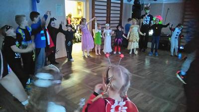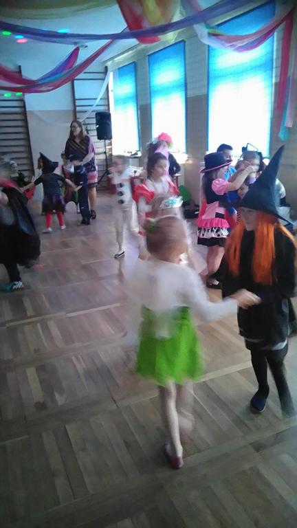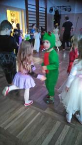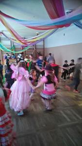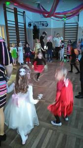 Na tą wyjątkową okazję zaprosiliśmy do prowadzenia balu pana, który zachęcał wszystkich do tańca przygotowaną muzyką. Dzieci świetnie się bawiły i eksponowały swoje piękne stroje. Na sali podczas pląsów robiło się kolorowo, wszyscy bawili się wesoło, uśmiech nie znikał z twarzy mimo chwilowego zmęczenia.