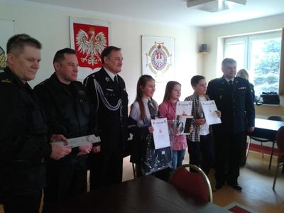 16 marca 2018r. w Komendzie Powiatowej Straży Pożarnej w Ciechanowie odbyły się eliminacje powiatowe Ogólnopolskiego Turnieju Wiedzy Pożarniczej ,,Młodzież Zapobiega Pożarom", w której to brały udział dzieci i młodzież ze szkół podstawowych, gimnazjów i szkół średnich z trzech gmin powiatu ciechanowskiego. Naszą szkołę reprezentował uczeń klasy V Bartłomiej Krębski. Eliminacje składały się z dwóch części : testu pisemnego i ustnych odpowiedzi. Bartek po pierwszej części otrzymał z testu 18 punktów i zajął I miejsce wśród uczniów szkół podstawowych a w drugiej części otrzymał 9 punktów i w ostateczny wyniku zajął III miejsce. Gratulujemy Bartkowi wspaniałych wyników i będziemy kibicować mu za rok !