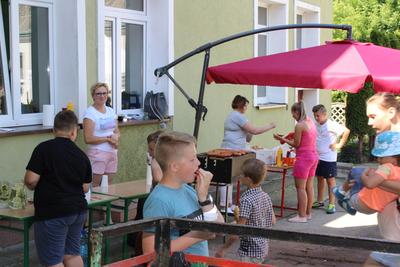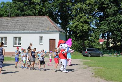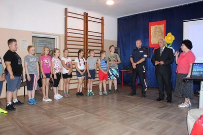 Następnie pani B. Blados, pan dyrektor wraz z przedstawicielem Policji w Ciechanowie wręczyli uczniom klasy IV karty rowerowe. Policjanci rozdali również dzieciom odblaski. Na zakończenie uczennica klasy VII Amelia Chojnacka przedstawiła wszystkim zebranym prezentację multimedialną pod tytułem „Trzymaj formę”. Uczennice z klas IV, VI i VII wykonały taniec promujący trzymanie dobrej formy. Potem wszyscy udali się na boisko szkolne, by uczestniczyć we wszystkich atrakcjach, które zostały przygotowane z myślą o dzieciach. Na boisku czekały już fotobudka oraz zjeżdżalnia, które cieszyły się ogromnym powodzeniem. Owe atrakcje zostały zasponsorowane przez kółko rolnicze w Woli Wierzbowskiej. Dodatkowo dzieci zabawiała firma animacyjna Agnes - Art, która nikomu nie pozwoliła się nudzić. Podczas zabawy dzieci miały możliwość zjeść kiełbaski z grilla, przygotowane przez rodziców dzieci, które zasponsorował GOK w Opinogórze Górnej. Dzieci zostały poczęstowane lodami, które pozwoliły ochłodzić się w ten gorący dzień. Zostały one ufundowane przez sklep spożywczy pana Kosika. Uczniowie mieli również możliwość pomalowania buziek oraz włosów. Wszyscy wyglądali tak kolorowo. Dodatkowo uczniów zabawiały dwie maskotki z bajek – były to Marshall oraz Poppy – ulubieńcy najmłodszych. Dzieci robiły sobie z nimi zdjęcia oraz wspólnie się bawili. Wszyscy odebrali też soki. Dodatkowo czas umilała muzyka. Cała impreza zakończyła się o godz. 12,00. Wszyscy bawili się świetnie i wrócili do domów bardzo zadowoleni.