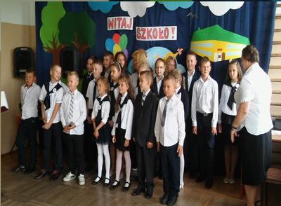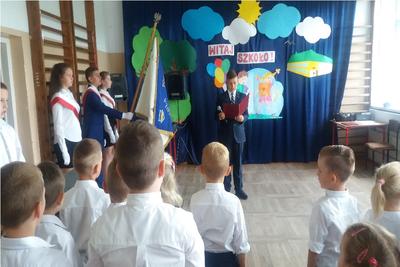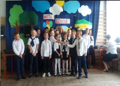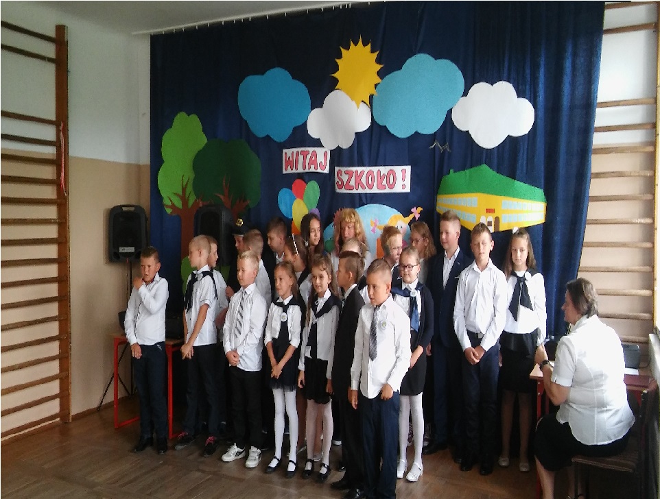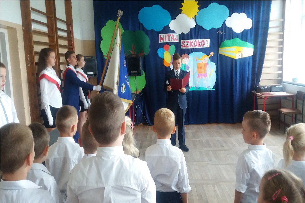 3 września 2018r. o godzinie 9.00 odbył się w naszej szkole uroczysty apel inaugurujący nowy rok szkolny 2018/2019. Uroczystość rozpoczął przewodniczący SU meldunkiem klas i raportem do dyrektora szkoły. Po wprowadzeniu pocztu sztandarowego na salę gimnastyczną i odśpiewaniem hymnu szkoły przez społeczność szkolną, głos zabrała przewodnicząca Rady Rodziców. Życzyła wszystkim uczniom i nauczycielom owocnej pracy, sukcesów w edukacji oraz podziękowała dotychczasowej Radzie Rodziców za pomoc i współpracę. W dalszej części uroczystości zabrał głos Dyrektor Szkoły p. Henryk Chojnacki, który powitał wszystkich zebranych w nowym roku szkolnym. Dyrektor zapoznał wszystkich z treścią listu od Ministra Edukacji Narodowej, który otrzymał oraz przedstawił zebranym organizację szkoły w nowym roku szkolnym. Szczególnie powitał nowych uczniów, którzy to po raz pierwszy przekroczyli progi naszej szkoły - dzieci z oddziału przedszkolnego oraz nowego nauczyciela języka polskiego, p.Emilię Kakowską- Pustelnik. Dyrektor życzył wspaniałego roku i wielu sukcesów uczniom, rodzicom i nauczycielom. Część oficjalna uroczystości zakończyła się odśpiewaniem drugiej zwrotki hymnu szkolnego i wyprowadzeniem pocztu sztandarowego. Po części oficjalnej, rozpoczęła się część artystyczna, przygotowana przez uczniów klasy III, IV, V i VI pod kierunkiem p. Izabelli Łączyńskiej. Uczniowie klasy VI zapoznali z wydarzeniami 1 września 1939r., które zapoczątkowały II wojnę światową. Po uczczeniu 79 rocznicy wybuchu II wojny światowej uczniowie wierszykami i piosenkami pożegnali wakacje, przywitali szkołę oraz nowy rok szkolny. Po części artystycznej uczniowie wraz z rodzicami udali się do klas na spotkania z wychowawcami.