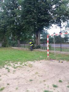 Na jednym z drzew znajdującym się w obrębie szkoły zagnieździły się szerszenie. Stwarzało to zagrożenie dla życia i zdrowia osób przebywających na terenie boiska szkolnego. Prośba o usunięcie gniazda tych szkodników została skierowana do dyżurnego Straży Pożarnej w Ciechanowie. Reakcja była szybka, pojawili się druhowie z OSP Wierzbowo, w specjalnych uniformach, używając odpowiednich środków i narzędzi zniszczyli gniazdo niebezpiecznych owadów. Poczuliśmy się znów bezpiecznie. Dziękujemy bardzo serdecznie strażakom z Wierzbowa za sprawnie przeprowadzoną akcję.