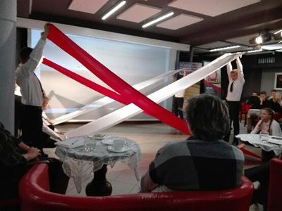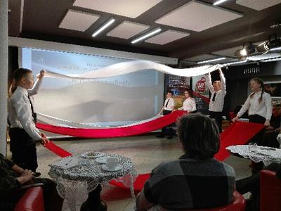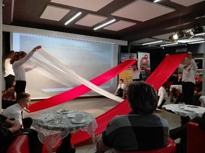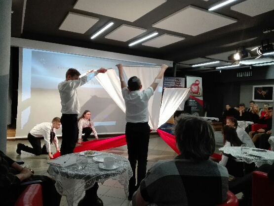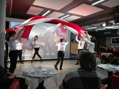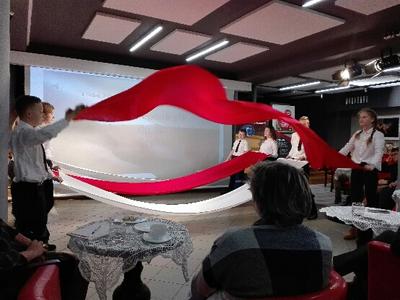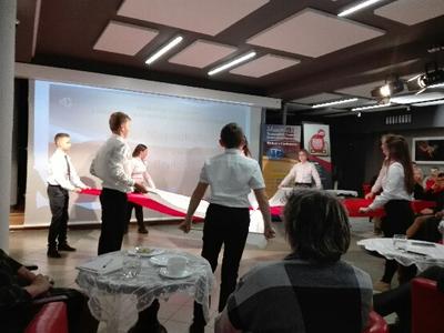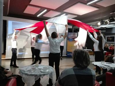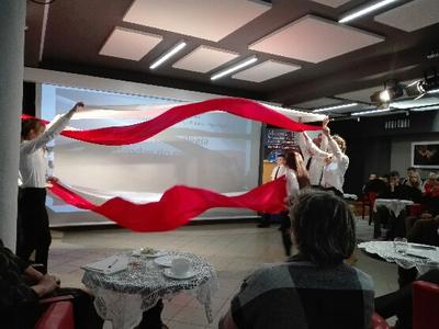 Nauczyciele przedmiotów humanistycznych, pracownicy bibliotek pedagogicznych i uczniowie Szkoły Podstawowej TWP i Zespołu Szkół im. J. Bema w Ciechanowie mogli obejrzeć „Taniec z flagami” przygotowany przez uczniów klasy VII pod kierunkiem wychowawczyni Marii Sykut. Po występie młodzież nagrodzono gromkimi brawami.