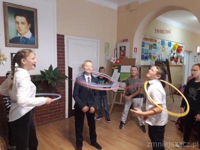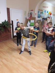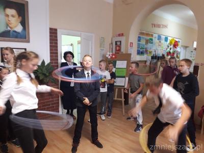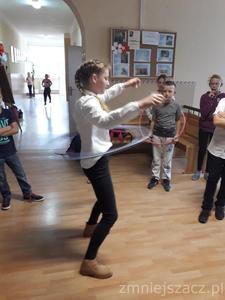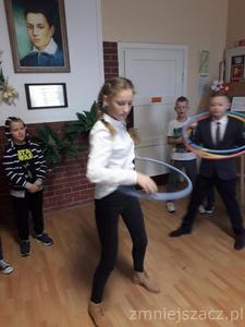 24 października jest obchodzony Światowy Dzień Walki z Otyłością. Według danych Instytutu Żywności i Żywienia, problem otyłości z każdym rokiem staje się większy i stanowi już prawdziwą epidemię. Polskie dzieci tyją najszybciej w Europie i nie chcą się ruszać, już co trzeci ośmiolatek ma nadwagę lub otyłość. Coraz częściej najmłodsi zmagają się z chorobami cywilizacyjnymi, typowymi dla starszego pokolenia. Aby zaakcentować ten problem, w naszej szkole podczas długiej przerwy uczniowie kręcili hula hop, a nauczyciele mierzyli czas. Najdłużej kręcili: Natalia Lewandowska z klasy VII, Paweł Kołakowski- kl. VII oraz Maja Chojnacka – klasa III. Gratulujemy i zapraszamy wszystkich do ćwiczeń tego typu. A oto instrukcja jak prawidłowo kręcić hula hop: stań w lekkim rozkroku, stopy przyłóż w całości do ziemi. Nałóż hula hop, podtrzymując je w okolicy bioder i zacznij nim zataczać okręgi. Staraj się utrzymać hula hop w powietrzu jak najdłużej jesteś w stanie.