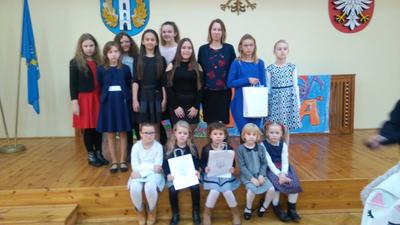 Wszyscy uczestnicy konkursu dostali nagrody. Osoby szczególnie wyróżnione za piękny śpiew to Weronika Goździewska, która zajęła pierwsze miejsce oraz Amelia Pacek zajmując drugie miejsce w konkursie. Na wyróżnienie zasłużyła także Julianna Goździewska. Bardzo cieszymy się z osiągnięć naszych uczniów.