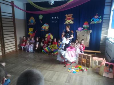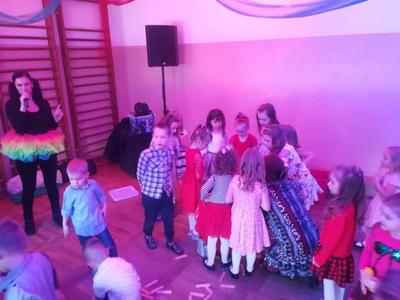 26 stycznia 2019 roku o godzinie 10:00 rozpoczęła się choinka szkolna dla dzieci z dwóch oddziałów przedszkolnych oraz klas I, II i III. Wszyscy świetnie bawili się na pięknie udekorowanej sali przy wspaniałej muzyce. O godzinie 11:00 odbyło się przedstawienie choinkowe pt: ,,Pokój Joli", przygotowane przez oddział przedszkolny, pod opieką pani Beaty Okonieckiej. Rodzice, nauczyciele, dzieci oraz wszyscy goście z ciekawością wnikliwie śledzili przebieg wystawionego przedstawienia. Aktorzy byli odpowiednio ucharakteryzowani i przebrani. Dzieci wcieliły się w role zabawek w pokoju Joli- dziewczynki, która na początku nie dbała o porządek w swoim pokoju, lecz zrozumiała w końcu, że nie można zaniedbywać swoich obowiązków i trzeba po sobie sprzątać. Po przedstawieniu dzieci zostały poproszone do swoich klas, gdzie wychowawcy rozdali każdemu słodką przekąskę w postaci soczku i wafelka. Po zdrowej przekąsce wszyscy bawili się dalej. Podczas zabawy choinkowej organizowanych również było wiele konkursów dla dzieci, z wykorzystaniem chusty animacyjnej, klocków, liny do przeciągania, specjalnych mat do chodzenia itd. W zabawie choinkowej uczestniczyli także rodzice, nauczyciele, pan dyrektor. Nasza wspaniała impreza zakończyła się o godzinie 14:00. Następnie rozpoczęła się choinka dla klas starszych od IV do VIII, gdzie dalej trwała wspaniała zabawa.