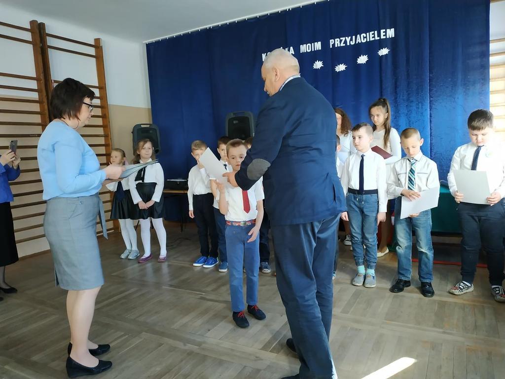 Wychowawczyni kl. I p. Bogumiła Blados w ramach realizacji innowacji pedagogicznej „Mali Readersi” wręczyła nagrody uczniom, którzy zebrali najwięcej naklejek za systematyczne, codzienne czytanie, potwierdzone podpisem rodzica.