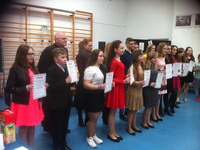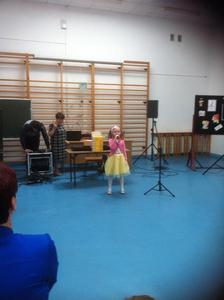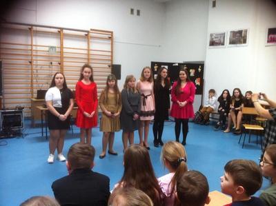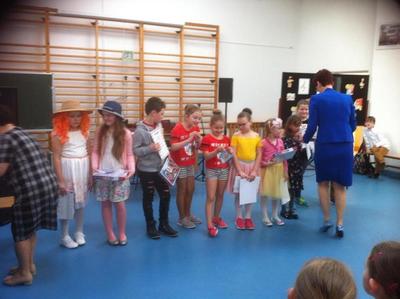 Naszą szkołę reprezentowały uczennice: Aleksandra Kołakowska z oddziału przedszkolnego, która zaśpiewała piosenkę pt.: ,, Słoneczna wycinanka”, Julianna Goździewska z klasy II , wystąpiła z utworem pt.: ,, Tańcz, tańcz, tańcz”, której towarzyszyły tancerki z klasy – Magdalena Pszczółkowska i Julia Purzycka oraz Weronika Goździewska z klasy VII, zaprezentowała utwór pt.: ,,Źyj”.