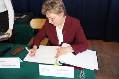 Uczniowie Szkoły Podstawowej im. św. Stanisława Kostki w Woli Wierzbowskiej gościli w swojej szkole posłankę na Sejm RP Panią Annę Ewę Cicholską. Spotkanie to odbyło się w poniedziałek 18 marca 2019r, w którym uczestniczyły klasy I-VIII. Wywiad prowadziło dwoje uczniów klasy VIII – Amelia Chojnacka i Radosław Kocięcki. Na wstępie uczniowie przedstawili sylwetkę oraz karierę zawodową Pani Anny Cicholskiej wszystkim zgromadzonym. Dalsza część rozmowy dotyczyła pracy posła, roli sejmu oraz ich kompetencji i działań. Spotkanie było ciekawe i inspirujące. Na zakończenie uczniowie wręczyli podziękowanie Pani poseł, a także poprosili o wpis do kroniki szkolnej. Do podziękowań dołączył się również Pan Dyrektor wręczając Pani Annie Cicholskiej bukiet kwiatów.