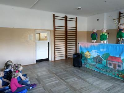 22 maja 2019 r. dzieci z oddziałów przedszkolnych oraz uczniowie klas I-III wzięli udział w przedstawieniu kukiełkowym pt. „Trzy świnki” w wykonaniu Firmy Edukacyjnej Piano z Kwidzyna. Zaprezentowana baśń pokazała dzieciom, że w życiu nic nie przychodzi za darmo. Tylko uczciwa praca i wysiłek mogą dać coś trwałego. Ważne jest również to, żeby mimo trudności się nie poddawać. Po obejrzeniu przedstawienia dzieci mogły zrobić sobie indywidualne zdjęcie w przebraniu bajkowym oraz z całą klasą.