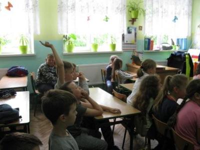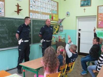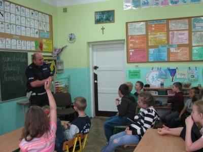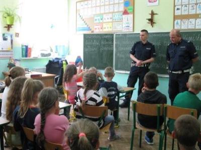 29 maja odbyło się w naszej szkole spotkanie uczniów kl. I – IV z przedstawicielami Komendy Powiatowej Policji w Ciechanowie z wydziału Ruchu Drogowego. Tematem spotkania było bezpieczeństwo najmłodszych uczestników ruchu drogowego. Uczniowie kl. IV, po egzaminie na kartę rowerową wykazali się zdobytą wiedzą na temat przepisów ruchu drogowego. Młodsi koledzy i koleżanki zasypali gości mnóstwem pytań, dotyczących pracy policjanta. Panowie z ogromną cierpliwością odpowiedzieli na wszystkie pytania dzieci i zaapelowali o bezpieczne zachowanie się uczniów w drodze do szkoły i do domu oraz podczas zbliżających się wakacji.