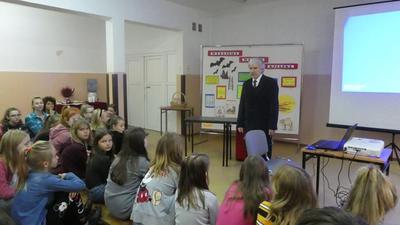 Dnia 25 października 2019 roku troje uczniów z klasy VII, tj. Joanna Burkacka, Patrycja Kołakowska i Maciej Brzeziński uczestniczyli w spotkaniu z Panem Robertem Miszczukiem z Pedagogicznej Biblioteki Wojewódzkiej im. KEN w Warszawie.