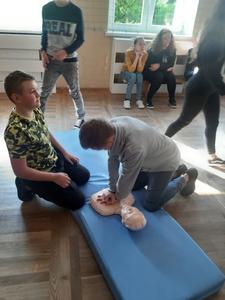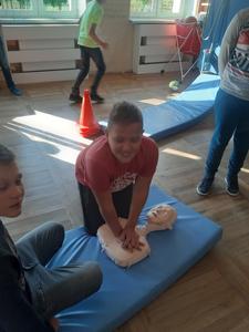 16 października 2019 uczniowie z naszej szkoły po raz drugi dołączyli się do akcji bicia rekordu w udzielaniu pierwszej pomocy „Ratujemy i uczymy ratować”. Ochotnicy z oddziałów przedszkolnych oraz klas 1-8 udzielali resuscytacji krążeniowo-oddechowej z użyciem 2 fantomów. Poznanie zasad pierwszej pomocy to nie wszystko – na podjęcie działań ratujących życie przez świadków zdarzenia ogromny wpływ ma również ich postawa, pewność co do swoich umiejętności, a także obawy, które często im towarzyszą. Dzieci oswajają się z tak ważnymi zagadnieniami, kształtowane są właściwe nawyki – pierwsza pomoc staje się dla nich czymś naturalnym.