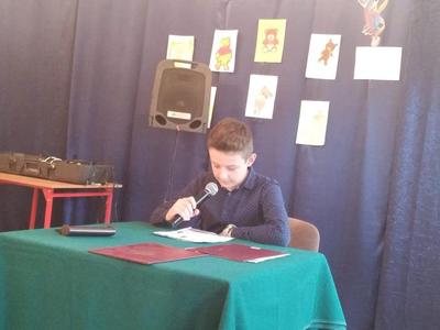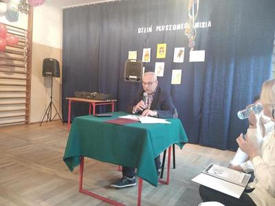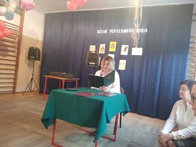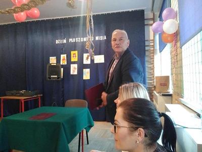 Zaproszonymi gośćmi, którzy czytali fragmenty książki Cz. Janczarskiego „Miś Uszatek” byli: dyr. szkoły p. Henryk Chojnacki, p. Izabela Teklińska i p. Małgorzata Kołakowska. Wybrany fragment przeczytał również ucz. kl. VII – Kacper Przewodowski.