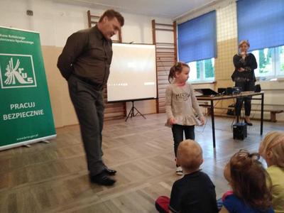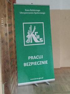 Dnia 20 11 2019r. nasi uczniowie - oddziały przedszkolne oraz klasy I-III - wzięli udział w pogadance na temat bezpieczeństwa podczas rolnych. Pracownicy KRUS-u na początku spotkania przedstawili dzieciom bajkę o rodzinie Porażków, która opowiadała o różnych wypadkach i niebezpieczeństwach, którym można ulec podczas prac na wsi. Następnie wyjaśnili dzieciom, jak takich wypadków unikać. Pod koniec spotkania dzieci miały możliwość zadawania pytań naszym gościom. Uczniowie, jak się okazało, mają bardzo dużą wiedzę na temat bezpieczeństwa na wsi podczas prac rolnych i nie tylko. W ramach prezentu rozdano uczniom kolorowanki i komiksy opowiadające o unikaniu wypadków