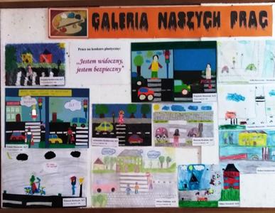 Jednym z wielu działań promujących w naszej szkole bezpieczeństwo pieszych na drodze był konkurs plastyczny pt.: ,,Jestem widoczny, jestem bezpieczny”.