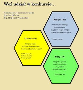 Nasza szkoła kolejny raz podejmuje liczne działania, które zmierzają do realizacji celów wpisanych w obchody DBI. W każdej klasie odbędą się zajęcia poświęcone tematyce zagrożeń w sieci oraz zasad bezpiecznego korzystania z niej. 4 lutego odbędzie się spotkanie z przedstawicielami Komendy Powiatowej Policji w Ciechanowie na temat "Uzależnienia od smartfona" z podziałem na dwie grupy. Pierwsza grupa oddział przedszkolny, zerówka, klay I-IV, druga grupa klasy V-VIII. Uczniowie klasy VIII realizują WebQuest Bezpiecznie w sieci /zakładka dla uczniów→informatyka→ WebQuest/, którego efekty będą zaprezrezentowane społeczności uczniowskiej. Chętni uczniowie mogą wziąć udział w wybranym konkursie.
