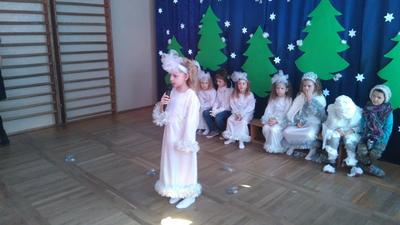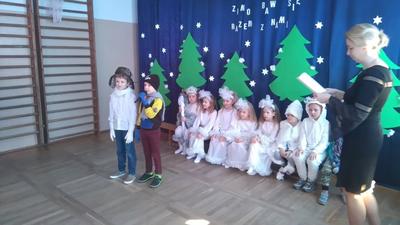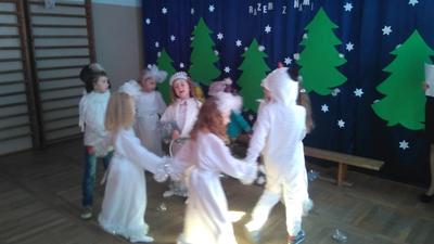 8 lutego 2020 roku o godzinie 10:00 rozpoczęła się choinka szkolna dla dzieci z dwóch oddziałów przedszkolnych oraz klas I, II i III. Wszyscy świetnie bawili się na pięknie udekorowanej sali przy wspaniałej muzyce. O godzinie 11:00 odbyło się przedstawienie choinkowe pt: ,,Zimo baw się razem z nami", przygotowane przez oddział przedszkolny, pod opieką pani Beaty Okonieckiej. Rodzice, nauczyciele, dzieci oraz wszyscy goście z ciekawością wnikliwie śledzili przebieg wystawionego przedstawienia. Aktorzy byli odpowiednio ucharakteryzowani i przebrani. Dzieci wcieliły się w role zimowych postaci jak śnieżynki, pani zima, bałwanek, mróz, dzieci bawiące się z panią zimą. Po przedstawieniu dzieci zostały poproszone do swoich klas, gdzie wychowawcy rozdali każdemu słodką przekąskę w postaci soczku i wafelka. Po zdrowej przekąsce wszyscy bawili się dalej. Podczas zabawy choinkowej organizowanych również było wiele ciekawych konkursów dla dzieci. W zabawie uczestniczyli także rodzice, nauczyciele, pan dyrektor. Nasza wspaniała impreza zakończyła się o godzinie 14:00. Następnie rozpoczęła się choinka dla klas starszych od IV do VIII, gdzie dalej trwała wspaniała zabawa.