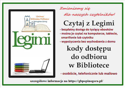 Gminna Biblioteka publiczna w Opinogórze Górnej zaprasza do korzystania z bezpłatnej usługi Legimi.