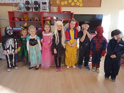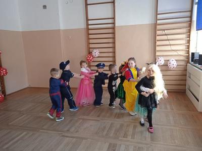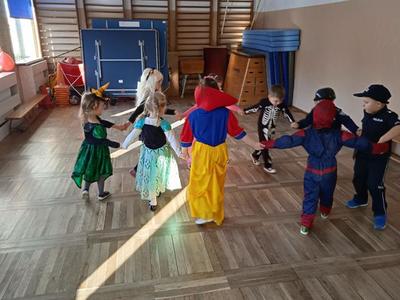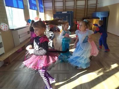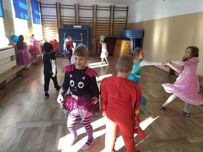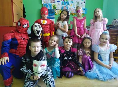 Tego dnia już od rana pojawiały się kolorowe postacie. Dzieci przebrane były za bohaterów znanych bajek, można było spotkać wróżki, królewny, myszki, delikatne motylki, kotki, piratów, duchy, policjantów, Spider-Mana, Batmana, ... nie sposób zliczyć i wymienić tych wszystkich postaci. Dzieci świetnie się bawiły i eksponowały swoje piękne stroje. Na sali podczas pląsów robiło się kolorowo, wszyscy bawili się wesoło, uśmiech nie znikał z twarzy mimo chwilowego zmęczenia.
