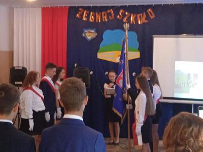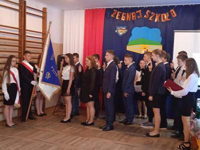 Ważnym punktem uroczystości była ceremonia przekazania sztandaru nowemu składowi pocztu, w skład którego weszli: Zofia Przewodowska, Maja Rzeczycka i Dominik Tekliński. Później odbyło się ślubowanie absolwentów.
