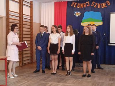 Następnie dyrektor szkoły p. Henryk Chojnacki przywitał Radę Pedagogiczną a w szczególności uczniów klasy VIII.