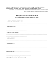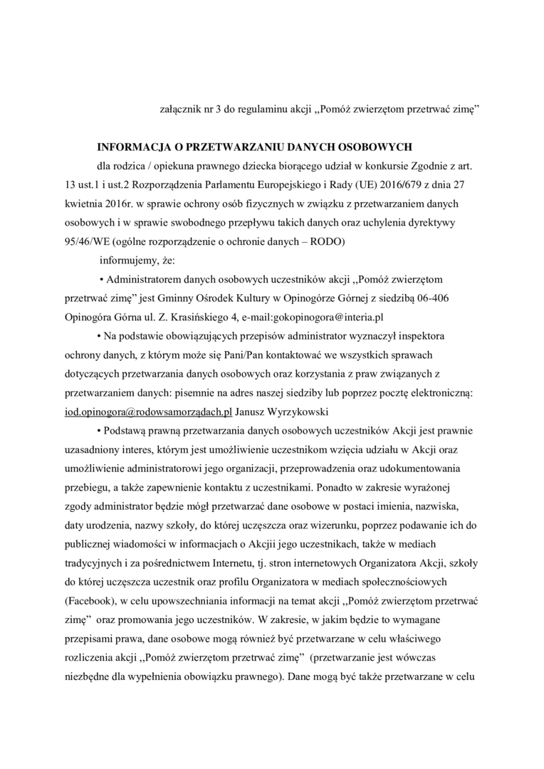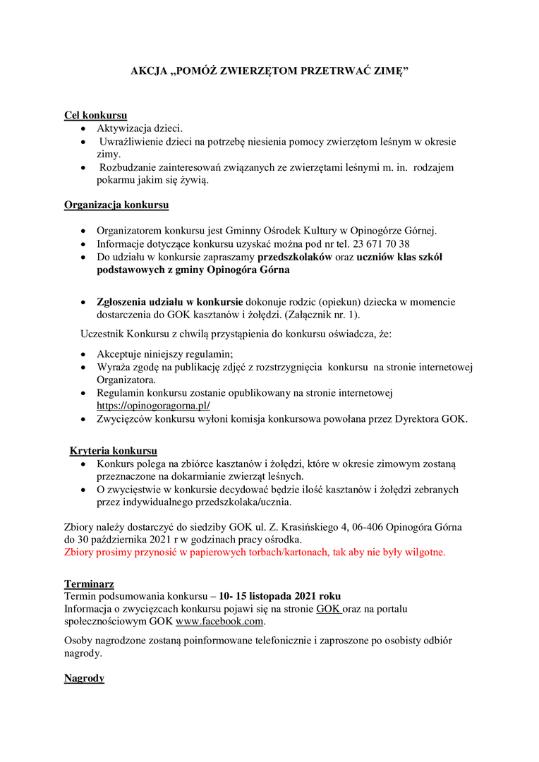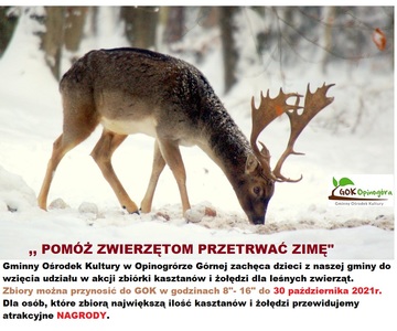 Akcja "Pomóż zwierzętom przetrwać zimę" Galeria zdjęć Powiązane wiadomości Międzynarodowy Dzień Kropki Dni Patrona Zajęcia dla dzieci Akcja "Pomóż zwierzętom przetrwać zimę" Kierowco! Nie polujemy na zebrach Wycieczka do Warszawy Drukuj Udostępnij Data dodania: 03.10.2021 Wyświetlono: 203 Aktualności