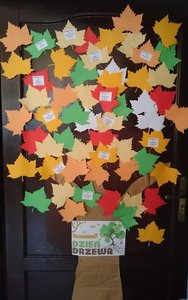My, uczniowie klasy V również włączyliśmy się w tegoroczne świętowanie. Podczas zajęć z wychowawcą poznaliśmy znaczenie drzew dla środowiska. W naszej sali lekcyjnej powstał kolorowy plakat, a drzewa wokół szkoły otrzymały od nas upominkowe karty.