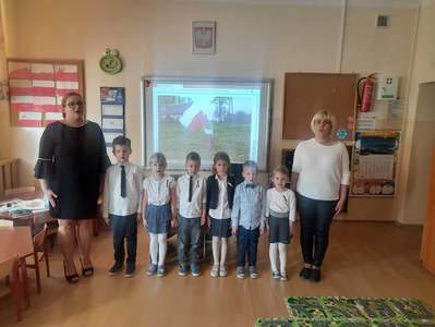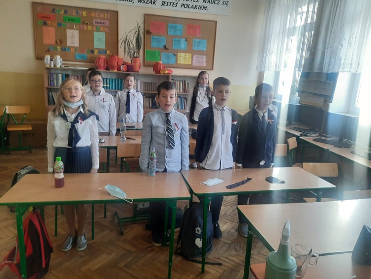 10 listopada 2021 roku obchodziliśmy w naszej szkole Narodowe Święto Niepodległości. W ramach tych obchodów nasza społeczność szkolna przyłączyła się do Ogólnopolskiej akcji „Niepodległa do Hymnu!”. Pokazaliśmy, że w kolejną rocznicę odzyskania niepodległości jesteśmy jedną, biało-czerwoną rodziną. Zademonstrowaliśmy to w najbliższy sercom Polaków sposób – poprzez wspólne, klasowe odśpiewanie Mazurka Dąbrowskiego!