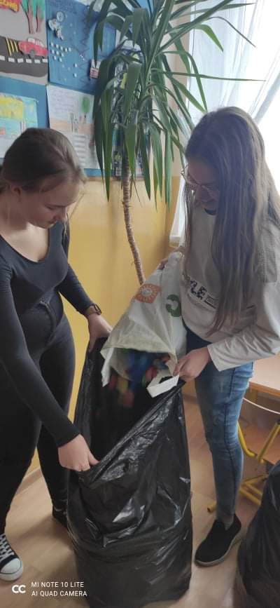 Od wielu lat zbieramy w naszej szkole plastikowe nakrętki na szlachetne cele. Najczęściej oddawaliśmy je do Fundacji Niepełnosprawnych "Świetlik" w Przasnyszu. W tym semestrze była to pomoc dla Antosia Szlaskiego, który czekał na operację serduszka, wartą 1 milion zł. Dzięki zaangażowaniu przedszkolaków i uczniów oraz wsparciu rodziców, zebraliśmy na ten cel 9 dużych worków nakrętek.