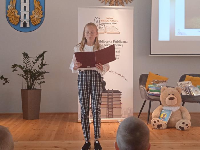 W piątek 13 maja 2022r. siedmioro uczniów ze Szkoły Podstawowej im. św. Stanisława Kostki w Woli Wierzbowskiej wzięło udział w konkursie ładnego czytania ,,Z książką za pan brat.'' zorganizowanym przez Gminną Bibliotekę Publiczną w Opinogórze Górnej.