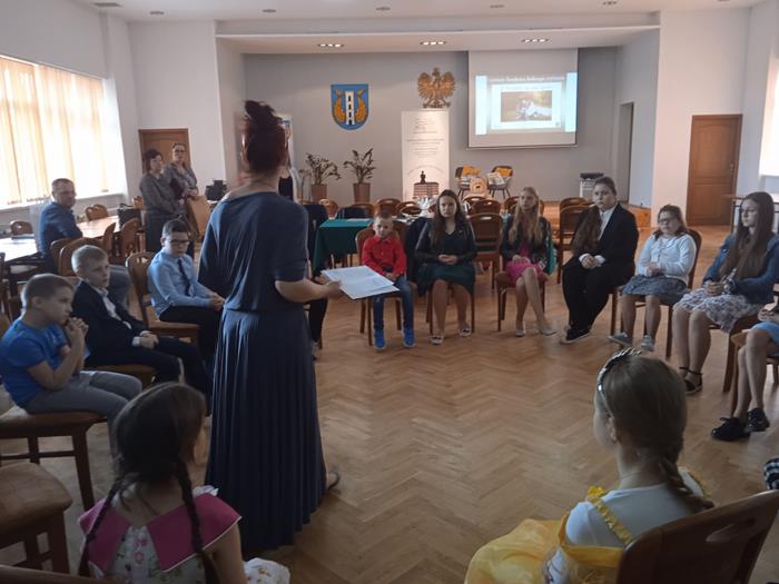 Po rozstrzygnięciu konkursu i wręczeniu nagród uczniowie wzięli udział w warsztatach recytatorskich poprowadzonych przez p. Annę Mikę.