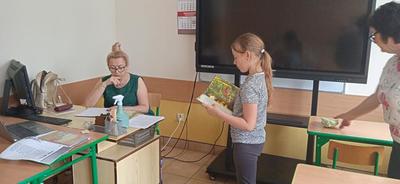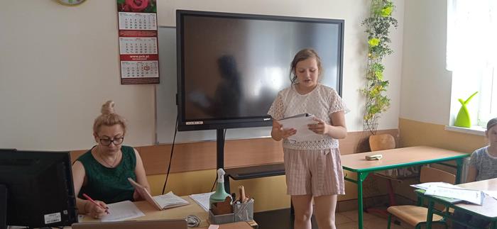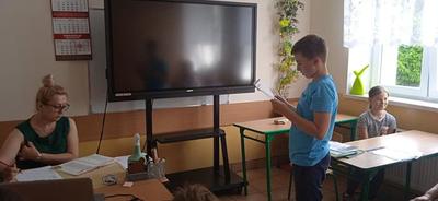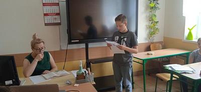 Uczniowie pisemnie odpowiadali na pytania przygotowane przez p. Annę Redwanowską i
