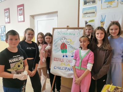W dniu 30 września 2022 r. zorganizowaliśmy kiermasz pod hasłem „Dla chłopaka na Dzień Chłopaka”, z którego dochód przeznaczyliśmy na pomoc dla Olusia Połuboczka. Dzięki wielkiemu sercu i zaangażowaniu całej społeczności szkolnej zebraliśmy 690, 16 zł. Nasi Rodzice sprawili, że ten dzień smakował podwójnie. Ciasta, babeczki, rurki – palce lizać. Ogromnie smakowite były też tosty z zawartością różną. Z drugiej strony wsparcie, szczodry gest, okazane serce.