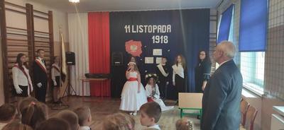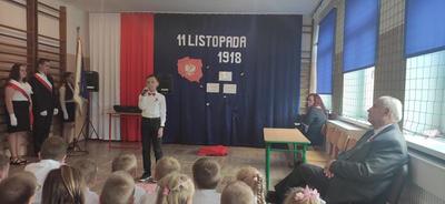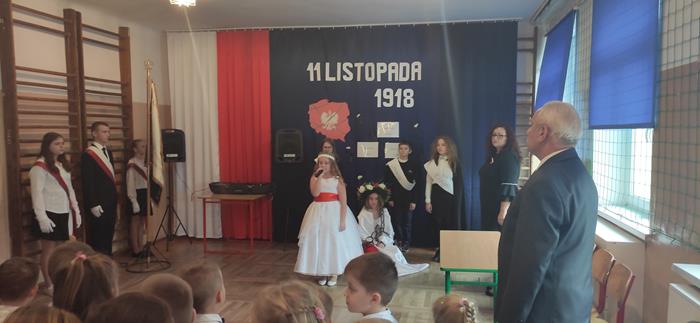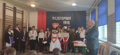 Na zakończenie akademii głos zabrał dyrektor szkoły p. Henryk Chojnacki, który przybliżył wszystkim zgromadzonym historię narodu polskiego, wspomniał najbardziej zasłużone postaci, m.in. marszałka Józefa Piłsudskiego, który poprowadził Polskę do zwycięstwa.