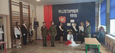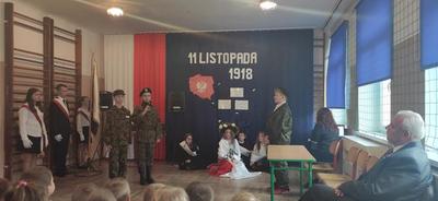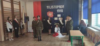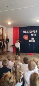 Uczniowie kl. III-VIII recytowali wiersze i śpiewali pieśni patriotyczne, które pozwoliły zrozumieć rozterki i uczucia walczących o niepodległość. Swoje umiejętności recytatorskie oprócz w/w uczniów zaprezentowali: Magdalena Pszczółkowska /kl. VI/, Julia Purzycka /kl. VI/, Dawid Kuczyński /kl. VII/.