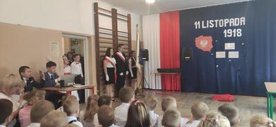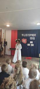 I zwrotkę pieśni patriotycznej pt. „Rota” zagrała na klarnecie Karolina Kołakowska /kl. III/ a pozostałe strofki wyśpiewała Lena Przewodowska. Nad oprawą muzyczną czuwała p. Marta Pokropska.